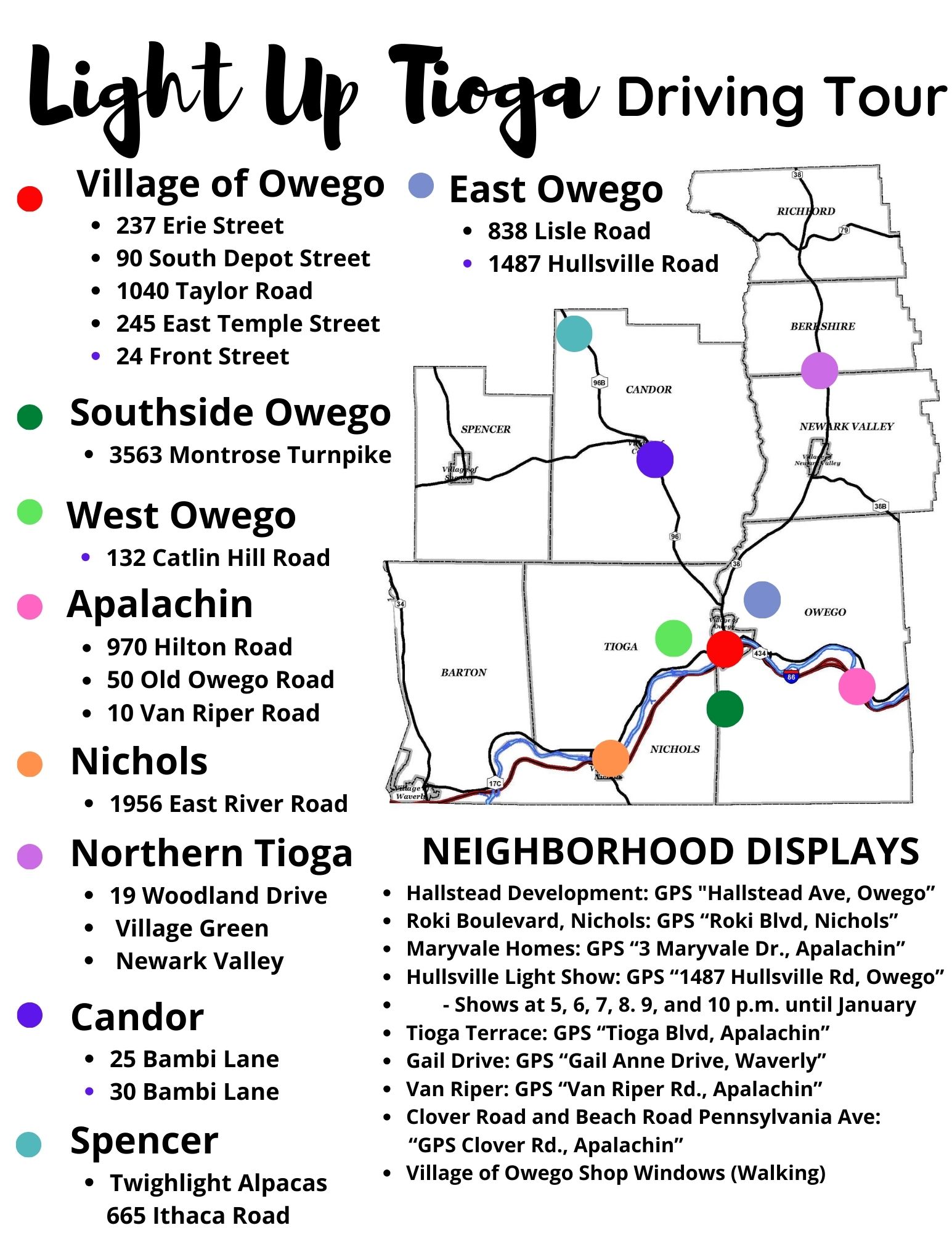 Light Up Tioga Map 2024