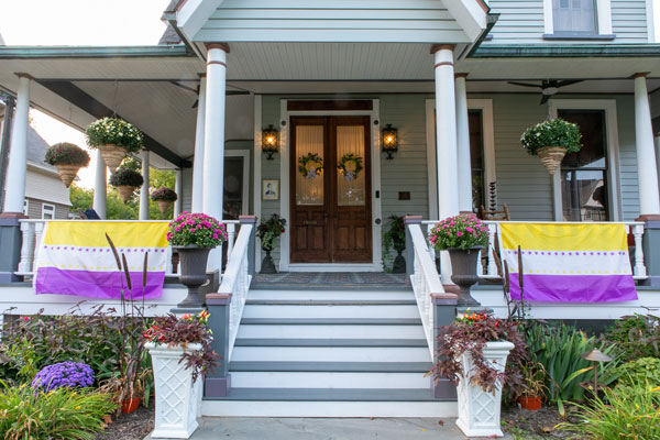 Relax on the front porch with a delicious breakfast or evening drink, taking in views of the charming village. Inside, discover beautifully restored architectural details, antique furnishings, and original fireplaces. Unwind at the one-of-a-kind bar, crafted from a grand piano circa 1865.